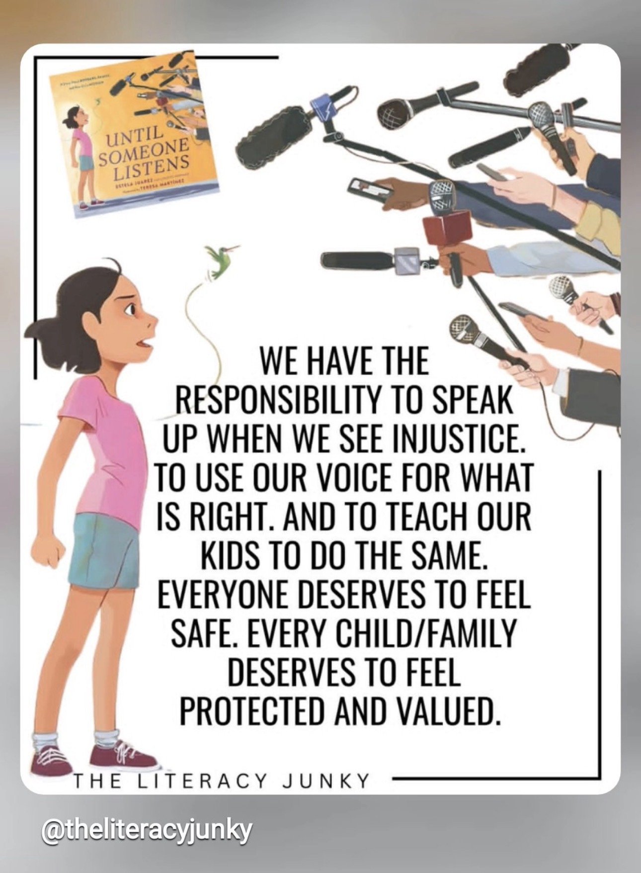 There are more kid lit community members than I can count who are using their platforms to speak out against injustice and to speak in support of their neighbors. Their posts give me comfort and make me want to be more active and more courageous.